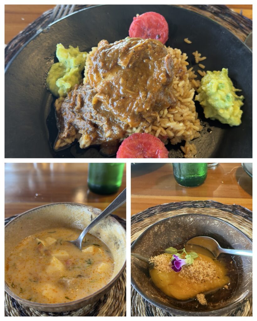 Next came the star of the meal: posta negra cartagenera, slow-cooked topside beef rich with deep, caramelized notes, served with coconut rice—expertly prepared by Janice—and plantains in temptation sauce, which Walter made using the local soft drink Cola Román, similar to a red cream soda. The dish was finished with a smooth avocado mayonnaise with lots of cilantros and a few chili peppers that tied everything together beautifully.